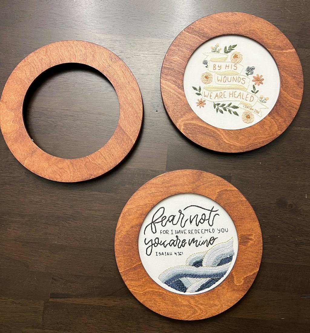 Upgrade your embroidery display with the 6” Hoop Frame from Modern Hoopla. These frames provide a polished, professional look and make it easy to hang your finished piece on the wall. Simply slide your hoop into the frame and secure it with the included shims for a snug fit. Designed to fit standard 6” wooden embroidery hoops (approximately 6.25” outer diameter) with a 5.7” center opening, each frame comes with installation instructions and cardboard tabs for added stability.