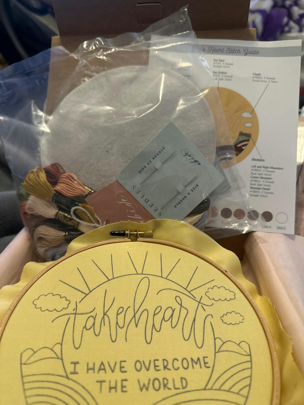 Want to gather your own supplies? Check out the digital download of this design: "Take Heart, I Have Overcome the World" Digital Guide