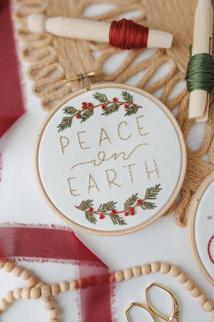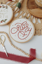 With this purchase you’ll receive two ornament designs—"Peace on Earth" and "Glory" Both designs fit a 4" hoop.